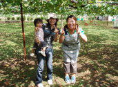 ■ぶどう狩りの受付は、入園口横の直売場で行っています。