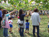 園内の休憩所では、ぶどう液、ジュース類、ビール等の販売をしております。